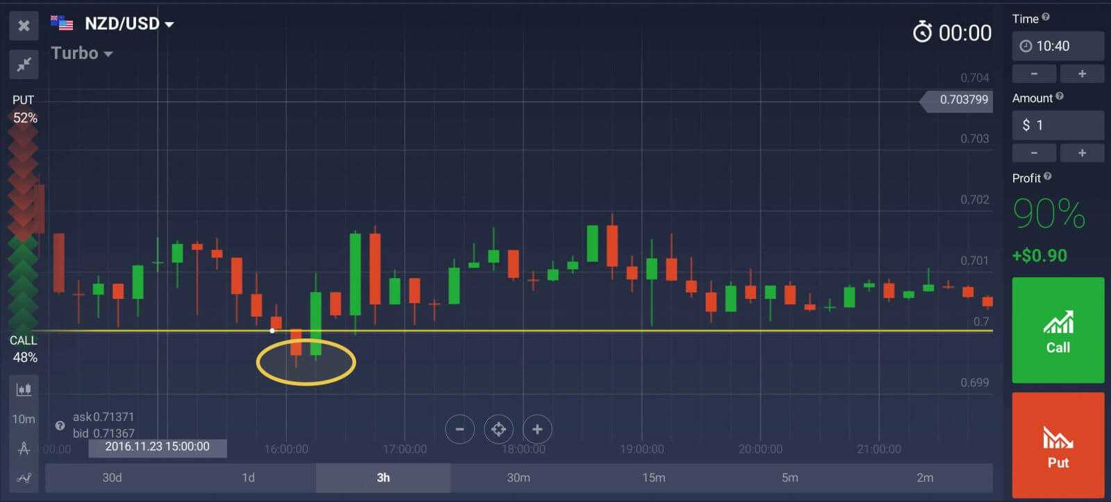 En algunos casos es mejor esperar hasta que se cierre la siguiente vela después de la ruptura y analizar la situación del mercado. Si el precio retorna después de la ruptura y la vela se dibuja opuestamente a la ruptura, esto probablemente es una falsa ruptura.